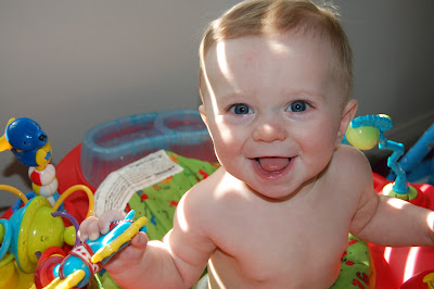 I am amazed everyday with how much you learn. I can see it your big blue eyes. You take everything in. In just the past few days you've gotten a tooth, started waving, rocking on your hands and knees, holding yourself up on the edge of chairs, you can walk across the room when we hold your fingers.
